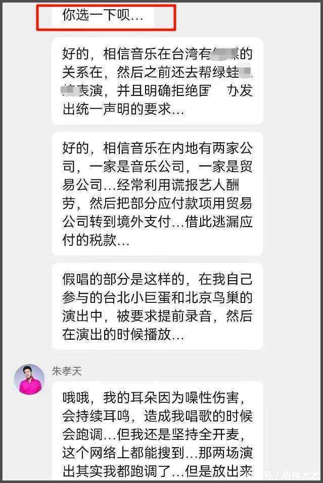但估计是有人一再骚扰朱孝天,朱孝天也不想再忍了,直接放出爆料,说自己都有证据,详细指控相信音乐所作所为,假唱在这里面都不算什么了。