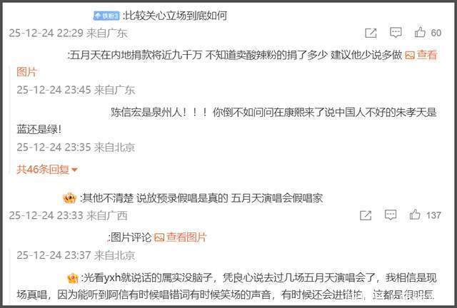 不少营销号评论区都有粉丝在控评洗白,问就是五月天捐款了、五月天没假唱、五月天是黄牛最不喜欢的艺人……但关键时刻从来不转发的是五月天,闹上热搜也不回应的也是五月天,这如何让网友信服?