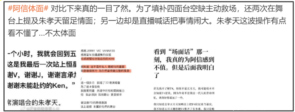 朱孝天缺席F4演唱会,先是爆料阿信公司提出“昧良心”的要求,他没接受就被踢出局,如今直接指控阿信公司(相信音乐)“四宗罪”,震惊网友。
